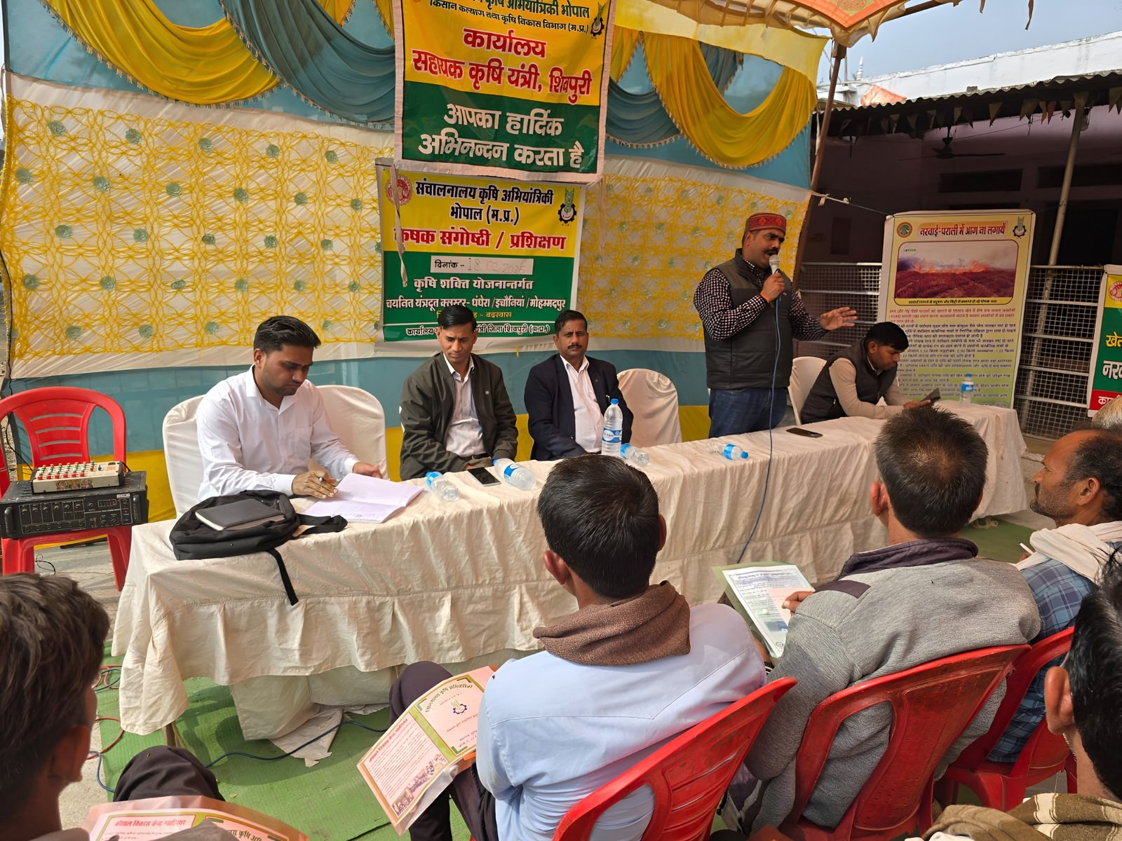 शिवपुरी/ जिले में कृषकों को उन्नत तकनीक एवं लाभकारी खेती के लिये कृषि विभाग के अधिकारी, कृषि वैज्ञानिक एवं कृषि अभियांत्रिकी कार्यालय के अधिकारियों द्वारा गतदिवस विकासखण्ड बदरवास के ग्राम धंधेरा, इचौनिया, मोहम्मदपुर ग्रामों में कृषक संगोष्ठी आयोजित कर उन्नत तकनीक एवं लाभकारी खेती की जानकारी दी।