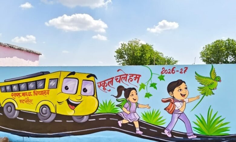 स्कूल चले हम अभियान के तहत विद्यालय में बाउंड्रीवाल निर्माण एवं आकर्षक वॉल पेंटिंग