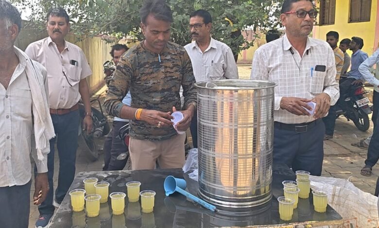 शिवपुरी, / कृषि उपज मंडी समिति बैराड़ में किसानों की सुविधा को ध्यान में रखते हुए तहसीलदार दृगपाल सिंह बैश द्वारा ठंडा पेय पदार्थ वितरण की सराहनीय पहल की गई। गुरुवार को मंडी परिसर में मंडी सचिव नरेंद्र जैन की उपस्थिति में उपस्थित कृषकों को ठंडा पेय पदार्थ (जलजीरा) वितरित किया गया।