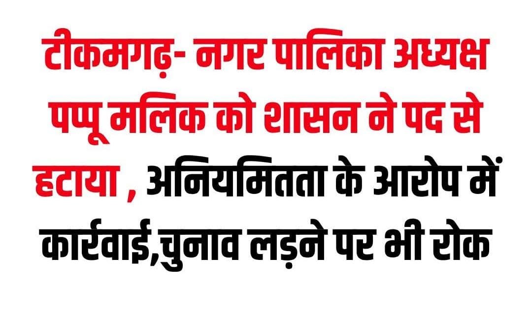 टीकमगढ़ में सियासी भूचाल: नगर पालिका अध्यक्ष पप्पू मलिक बर्खास्त, 5 साल के लिए चुनाव लड़ने पर भी रोक